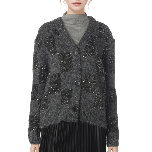 미쥬 르니앤맥코이 스팽글 루즈핏 브이넥 니트 가디건 ML11CD715FJY-1 Free 차콜그레이