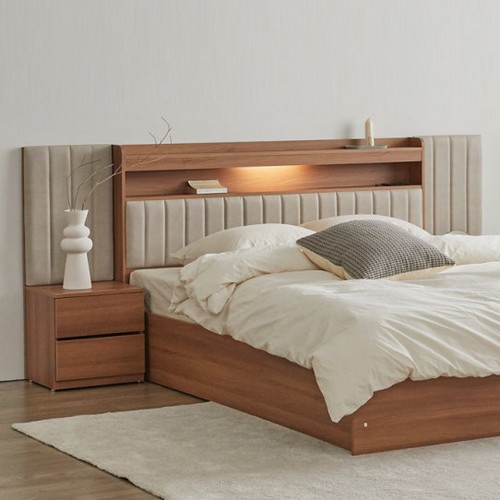 인터데코 숨결 하이브 가죽헤드 LED침대 SS+협탁2개 (양면본넬스프링)