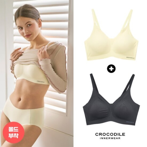 패션그룹형지 크로커다일 감탄 라이크라 쉘론 몰드부착 스트랩 브래지어 2종 (레몬+블랙)