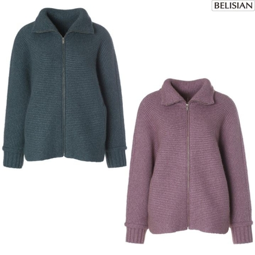 벨리시앙 여성 폭스 모 혼방 니트 집업 자켓 KT4401