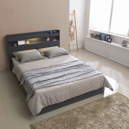 삼익가구 클로드 책장형 4단 수납 LED침대 SS (본넬스프링)