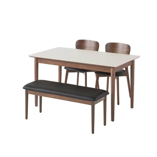 까사미아 카르네 브라운 세라믹 식탁 1400 (가죽의자2개+가죽벤치1개)