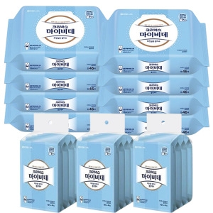 유한킴벌리 크리넥스 마이비데 클린케어 화장실용 물티슈 캡형 46매 + 리필형 10매 (캡8팩,리필12팩)