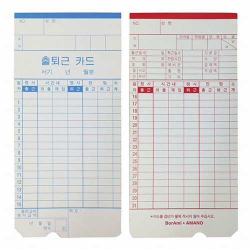 카피어랜드 TM-450A TM-450D 전용 출퇴근카드 (100매)