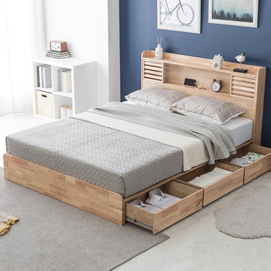 삼익가구 마레 4단 수납 원목 LED침대 Q (매트별도)