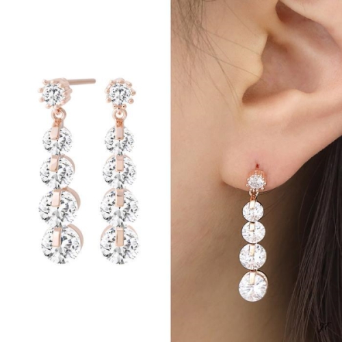 미니아트 14K 골드필드 핀 화려한 큐빅 드롭 일자침 귀걸이 16332020