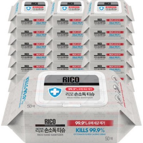 한울생약 리꼬 손소독 티슈 캡형 50매 + 20매 (캡2팩,캡4팩)