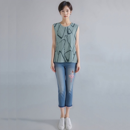 모라도 25년 봄 여름 중년 여성 밧줄조개 주름 나시 티셔츠 MOS5TP400F-CC