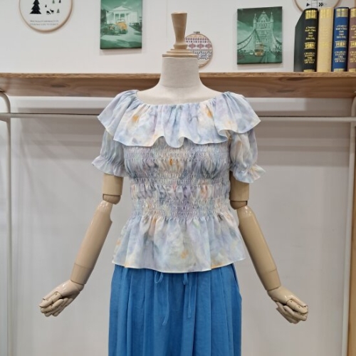 지엔코 써스데이아일랜드 소재 믹스 셔츠형 블라우스 T256MBL162W
