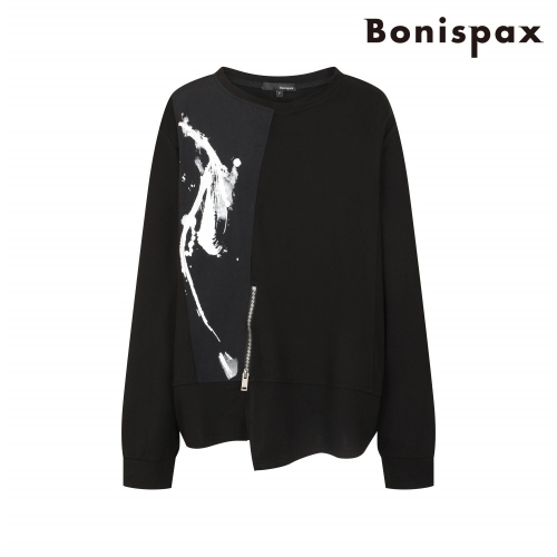 보니스팍스 라운드 우븐 프린트 배색 티셔츠-B1F45JTS110
