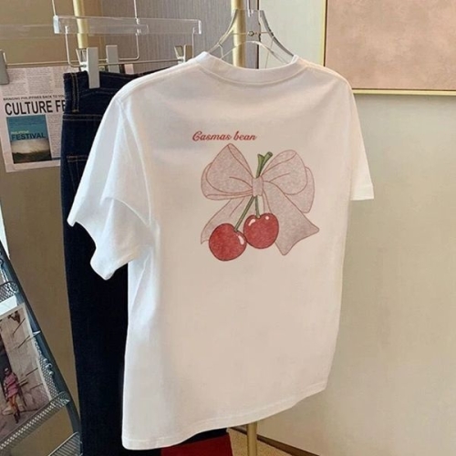 패션라인 BL10263_체리반팔티/반팔티/러블리룩/리본포인트/프린팅티셔츠/여름코디