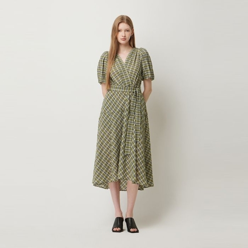 체크 브이넥 벨티드 원피스_SAOP07541KA