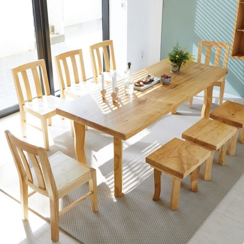 프라이드리빙 해찬솔원목이야기 비담art 통원목 식탁 2200 (의자5개+스툴3개)