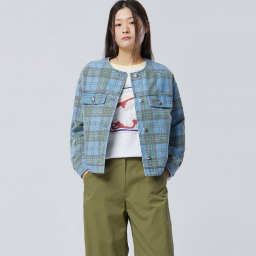 베네통 체크 라운드 데님 점퍼_BAJP08611GN