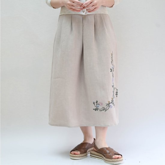 신형물산 비꼴리끄 린넨 자수 맞주름 밴딩 스커트 B232WK3140