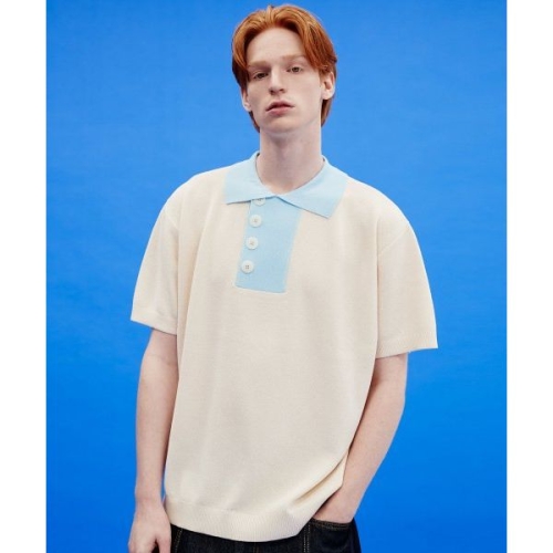 와이케이 WAIKEI 투톤 카라 반팔 니트 크림 883179