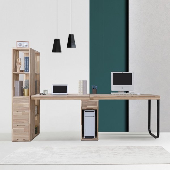 더젠 비쥬 아카시아원목 트윈 책상 세트4 (2200x600)