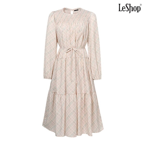 르샵 체크 패턴 리본 끈 캉캉 원피스 DP1OW016A
