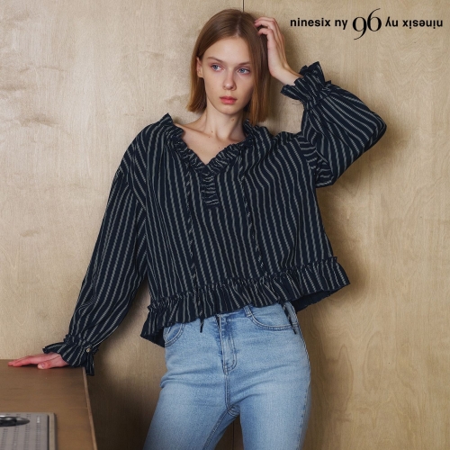 96NY 스트라이프 크롭 프릴 긴팔 블라우스 NP3BA027L0