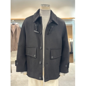 레노마 남성 블랙 울 캐시미어 혼방 캐주얼 반코트 RPDMBH64A