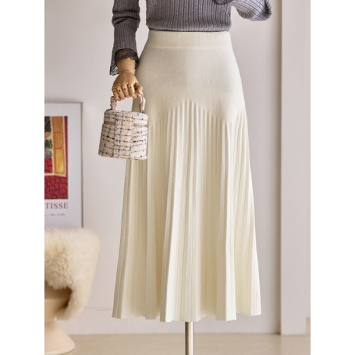커스텀에이블 사선 기계주름 니트스커트_T2510SK610C