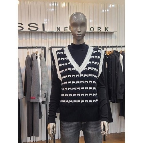 제시뉴욕 브이넥 니트베스트 MDA5NSKV6490BKM 블랙멀티 55
