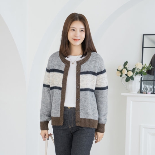 마담4060 엄마옷 코지배색니트가디건 중년여성 데일리 -ZCA2510006