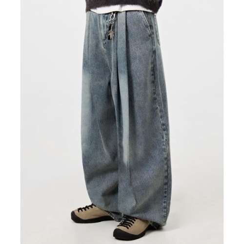 소나무인더스트리 디미트리블랙 어드저스트 투턱 와이드 슬랙스_데님 더스트 인디고 7981394